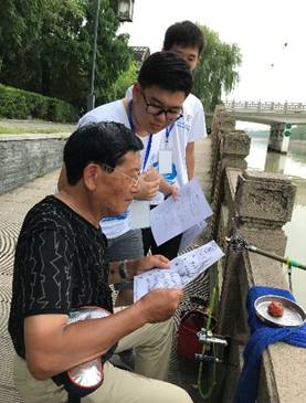 7月5日,调研团在古运河沿岸进行走访调查,了解到古运河近年来水质明显改善,但仍存在暴雨后水质较差、生活污水大量排放等情况,感受到沿岸居民对水质改善的期望,产生了运用专业知识切实改善水污染的想法。在走访中,调研团积极开展水生态保护宣传工作。
