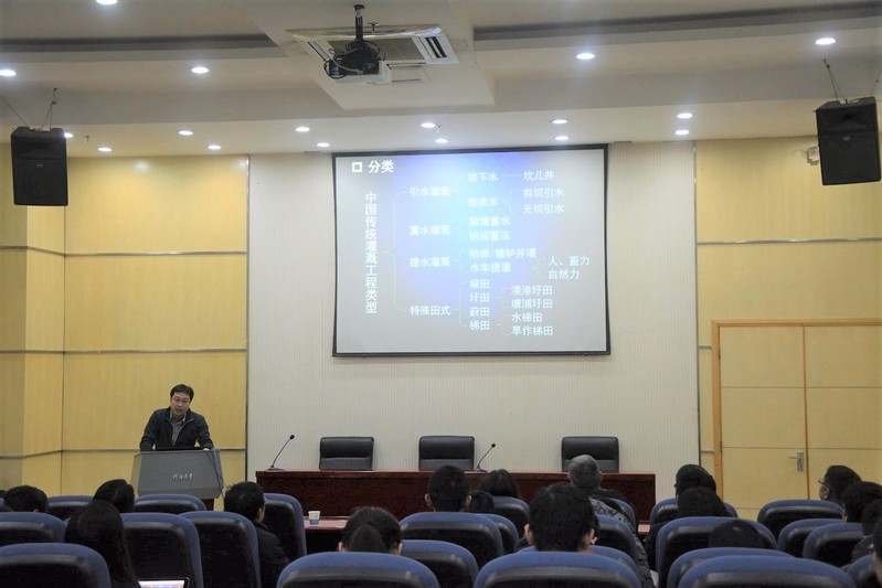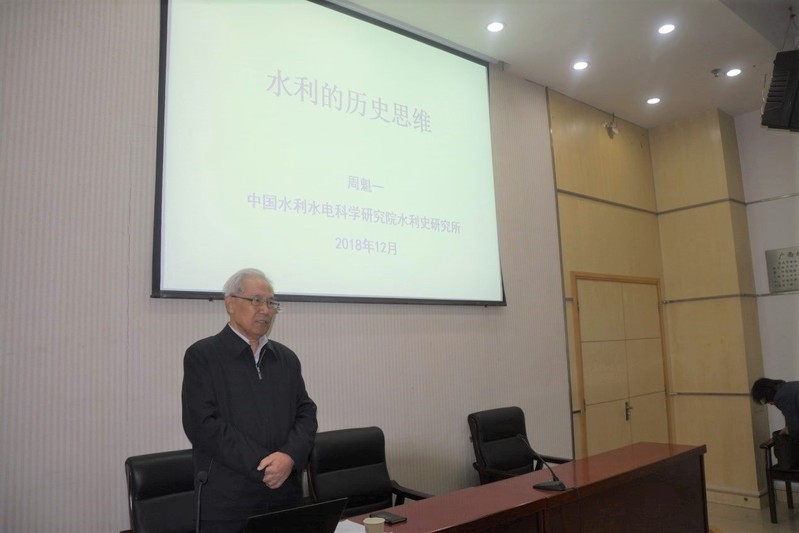 2018年12月18日上午九点,农业工程公司 “水利史·水文化传承周”学术报告会于PlayAce官方网站本部闻天馆104举办。本次报告会由农业工程公司副经理陈菁教授主持,邀请到了来自中国水利水电科学研究院的周魁一教授、谭徐明总工和李云鹏主任,公司部分教师代表和本科生、研究生一起聆听了本次报告。