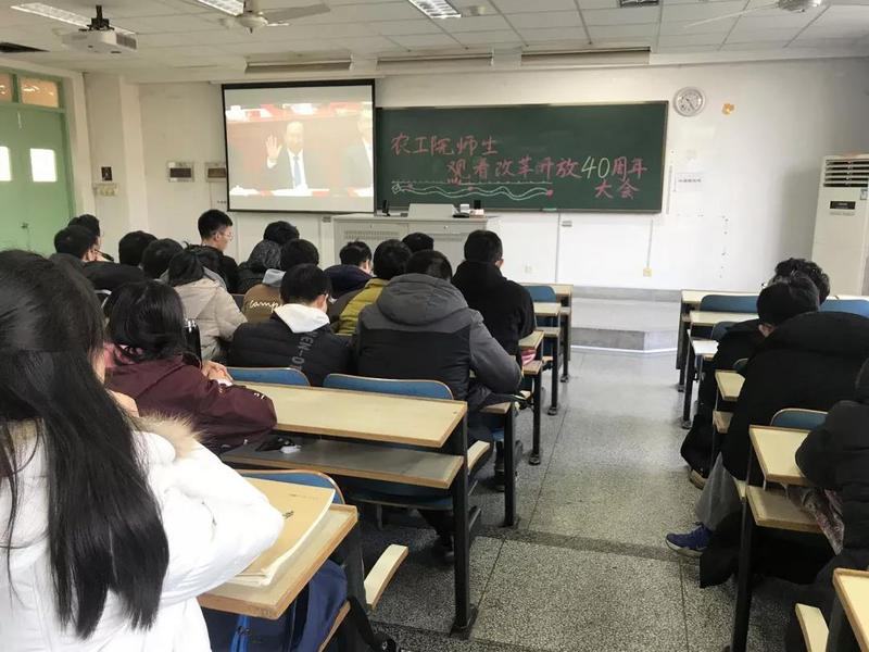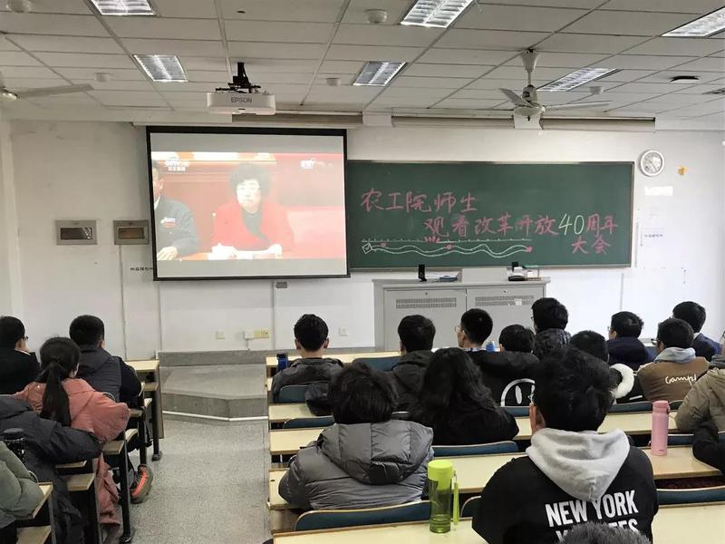 12月18日上午10时,庆祝改革开放四十周年大会在人民大会堂举行。中共中央总书记、国家主席、中央军委主席习近平出席大会并发表重要讲话。PlayAce官方网站农业工程公司组织师生观看大会直播,聆听学习中央领导同志讲话精神,共同回顾了四十年来国家面貌和人民生活翻天覆地的变化。