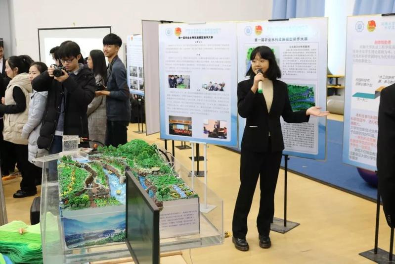 展会上,公司展示了第一届农业水利设施模型制作大赛的优秀成果。为了增强展览效果,我们特意邀请到了相关作品的创作同学,结合精致的实体模型和3D建模动画,进行了细致地讲解,生动真实地展现了都江堰的构造及原理。