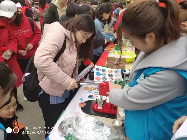 为调动路人参与公司活动的积极性,志愿者们准备了胸章DIY机器。在活动中,同学可以在志愿者指导下使用机器自制雷锋胸章,留作为参与本次活动的纪念。此游戏较为新颖,许多路过的同学都被它的趣味性所吸引前来。