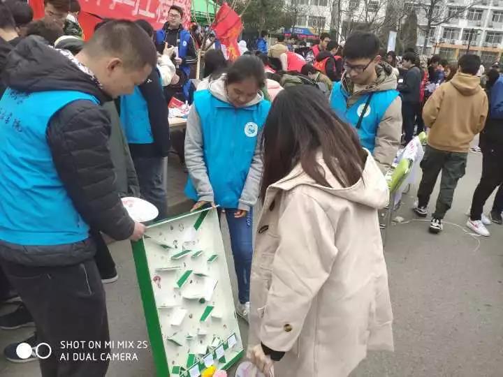 上午十点五十分,志愿者们在六食堂前集合完毕,进行了简单的现场布置。一部分志愿者负责悬挂事先做好的横幅,张贴旗帜;另一部分摆放整齐活动中要用到的弹球台、胸章DIY机、水质监测仪器、雷锋头像纪念笔、雷锋搪瓷杯等物品。十一点半左右,准备工作基本完成,也陆陆续续有同学们前来食堂。志愿者做的弹球台吸引了不少来往员工的注意力,他们纷纷好奇地询问如何参加游戏环节。根据游戏规则,同学们先进行弹球台游戏,通过弹球掉落的位置随机选择之后的小活动。