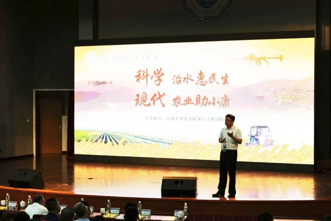 叶健教授为本次“农情河海”学术论坛做“江苏水系分区与省情特点”特邀报告。他以翔实的数据、科学的分析,全面、系统、深入地介绍了江苏省分区水系分布和省情特点,以及江苏省水利和农业建设发展的情况。他指出江苏省80%的地面处于洪水的威胁之下,素有“洪水走廊”之称,因此防洪工程的建设也是江苏省水利的重中之重。叶教授的精彩报告赢得了在场师生的热烈掌声。