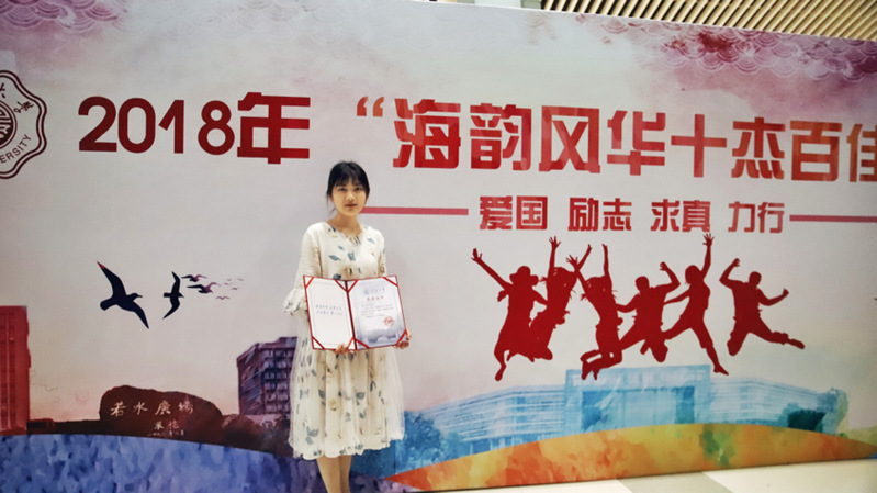 她态度认真,学习刻苦,成绩优异,乐于钻研,大二学年绩点4.73,大三绩点4.89。在政治思想方面积极要求上进,不断提高政治素养,连续四年获优秀员工、优秀员工标兵的荣誉称号。