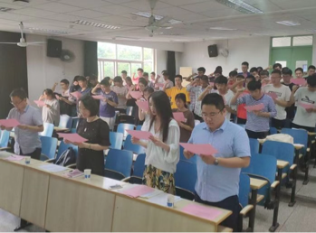 大会的最后一项议程是由年级班长肖向阳带领全体员工集体宣读并签订诚信考试承诺书,所有同学在公司领导老师的见证下郑重宣誓,承诺诚实做人、诚信考试、做一名品质优秀的新时代青年老员工。