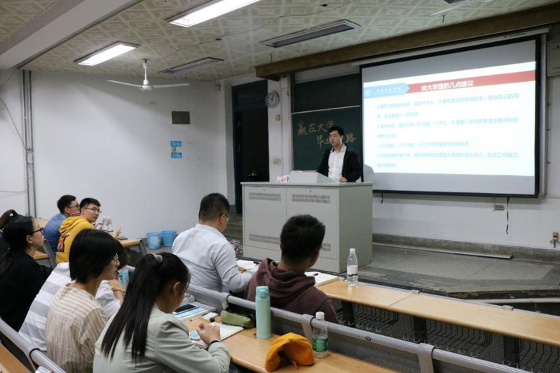 薛璟老师介绍了公司2015级毕业生的去向,并就2016级保研细则进行解读。获得东京大学、京都大学、代尔夫特大学和鲁汶大学四所国外知名大学offer的15级宋宇同学,就出国留学申请作了经验分享,建议大家建立留学时间轴和考试能力要求对比图,有效提升出国申请的成功率。公司14级柳真扬同学结合自己的心路历程对直博作了详细介绍,为大家提供了实质性建议。成功入职中国电建集团成都勘测设计研究院有限公司的15级王琢同学从单位认知、简历和面试准备、签约及薪资等方面为大家分享了求职体会和相关注意事项。17级硕士生刘晨钰同学分享了赴西藏拉萨支教的宝贵经历和深刻感悟,介绍了参加支教团计划的条件和要求。水电院16级辅导员曲永胜老师分享了自己通过辅导员助管计划留校任职的经历,并详细解读了相关政策。此外,获得武汉大学推免资格的王紫阳学长、成功考入天津大学的李奇学长还分别就硕士研究生推免、备考等作了经验分享和交流,让大家获益匪浅。