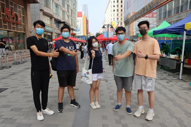 在和平区的检测中,也有许多社区街道、警务人员和医护工作者都是二三十岁左右的年纪,他们共同的特点便是胸前镰刀和锤头构成的党徽。