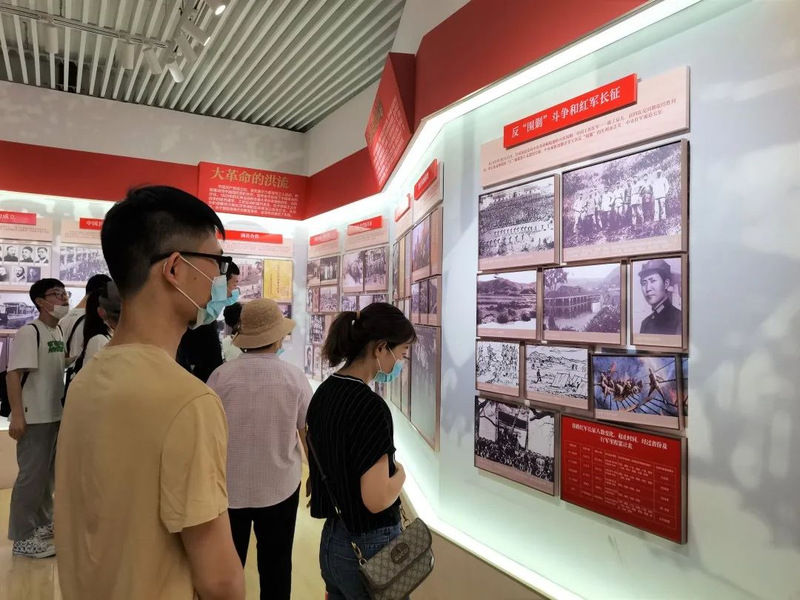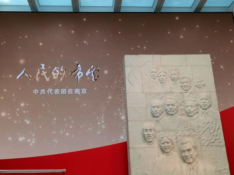 随后成员们来到国共南京谈判史料陈列馆。陈列馆位于梅园新村街道西侧,正中是一座高6.5米、宽3.3米的大型汉白玉浮雕,浮雕上镌刻着中共代表团领导成员和部分工作人员的群像。陈列馆中,成员们阅览了一系列专门介绍国共南京谈判的图片、文物和文献资料等,通过藏品回顾了国共南京谈判那段惊心动魄的历史,体会时代伟人的风采,并感受到老一辈共产党人艰苦朴素的生活作风。