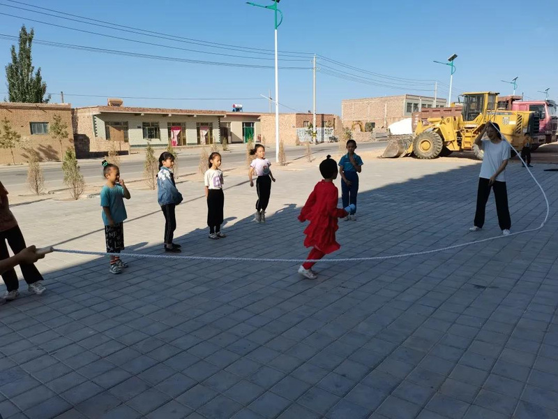 考虑到天气原因,支教队将体育课安排到第一节,因为可以带自己的体育器械,小朋友们一大早就到运动场上等待上课了,支教队员们怕小朋友们口渴,到商店里买了两箱水供小朋友们饮用。体育课上,支教队员们跟小朋友们共同参加体育锻炼:丢沙包、跳绳、踢足球等等等,小朋友们都玩得不亦乐乎。