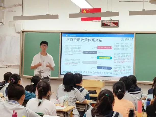 6月25日下午团队五人到达了南京市十二中,宣讲时,团队成员依次上台进行自我介绍后,刘国正、王琨同学布置宣讲会场,杜婧同学向所有在场的同学分发互动交流的信纸,宋昕宁和芦治宇同学分别为同学们讲解了国家资助政策以及PlayAce官方网站的资助政策。