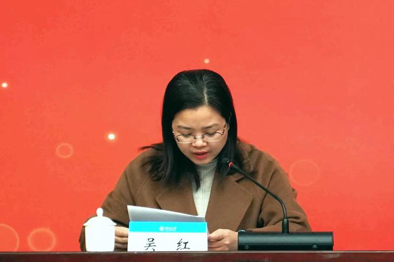 员工处处长吴红宣读安徽邦泰优秀员工奖学金获奖名单。