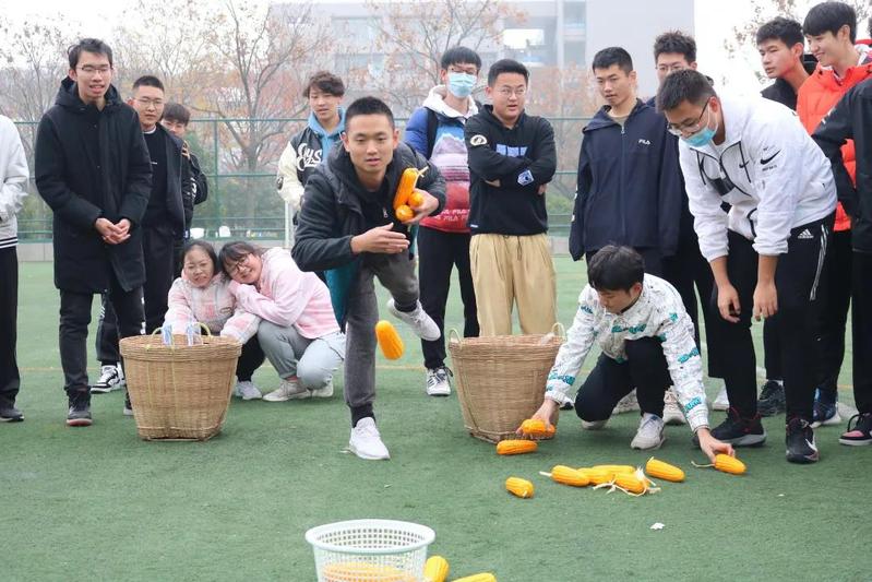 在比赛的第三个项目“玉米投壶”中,各班选手渐入佳境,行动利落。在这一环节里,不少班级的班导师也参与其中,与员工一起体验游戏的乐趣,感受比赛的激烈,进而更好地促进了师生间的友谊,拉近了老师与同学们的距离。