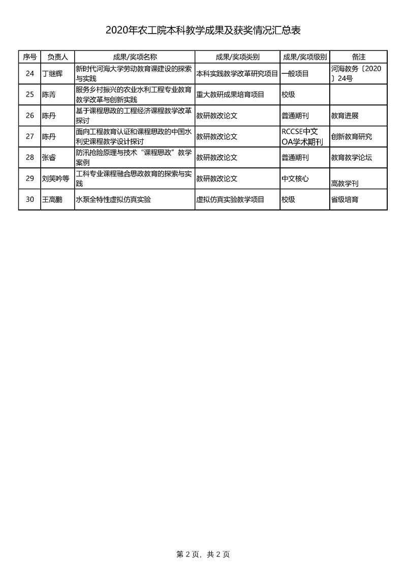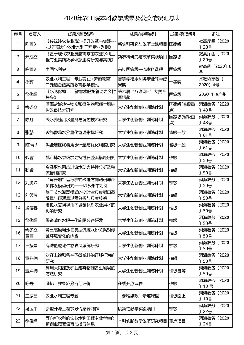 2020年PlayAce游戏平台本科教学成果及获奖情况汇总表