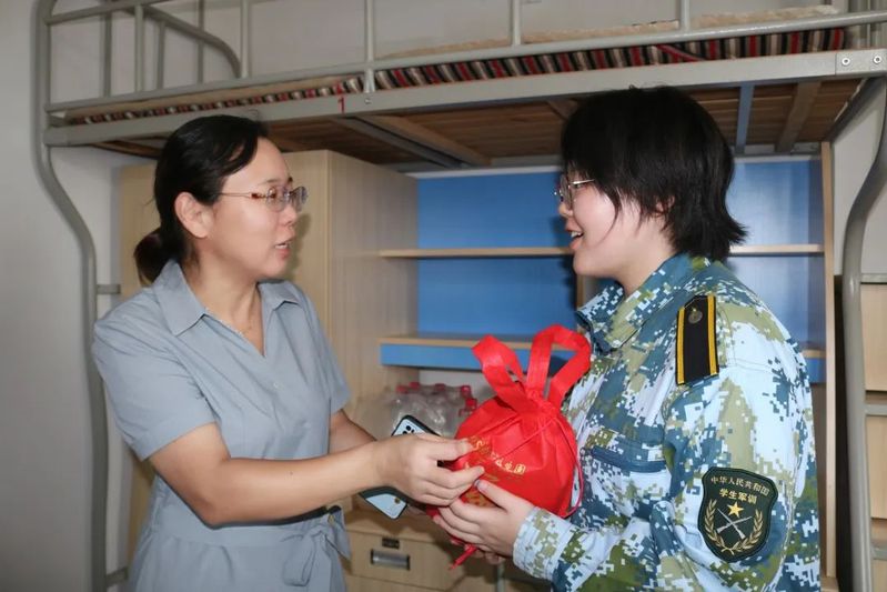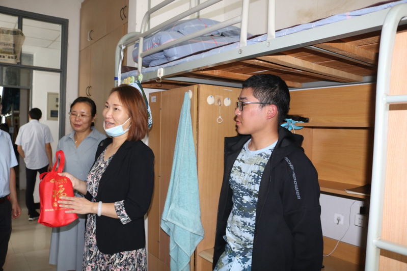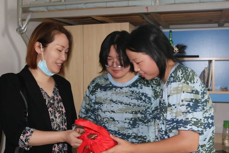 院领导,辅导员和班导师走进每一间寝室,关心问候每位同学的近况,与同学们亲切交谈。郑书记十分关心同学们对老员工活及军训的适应情况,希望同学们积极参训,养成自律的习惯,尽快适应老员工活,并祝福同学们中秋节快乐;张经理勉励同学们利用军训机会锻炼自己,培养吃苦耐劳的品质,嘱咐大家要常与家里联系,多回应父母寄挂,让父母放心。