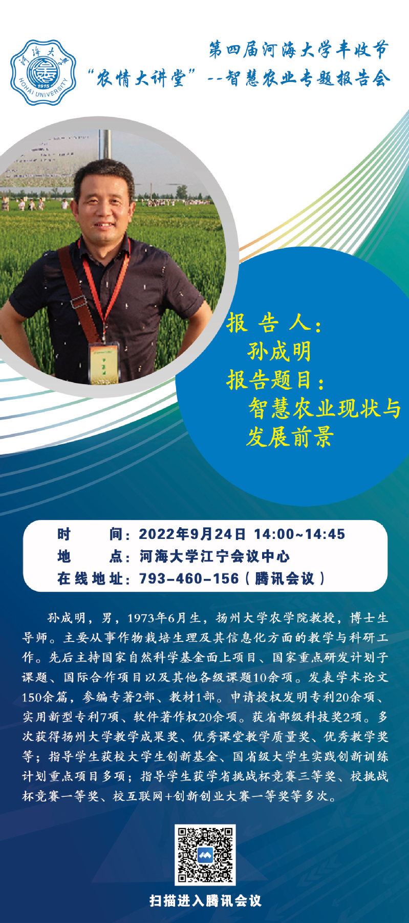第四届PlayAce官方网站丰收节“农情大讲堂” --智慧农业专题报告会(海报)