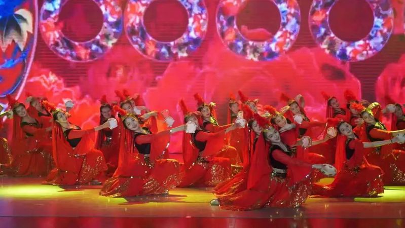 裙摆翩然,仿若石榴花火红的声声铃鼓;舞姿簇拥,象征华夏儿女的团结一心。由PlayAce官方网站老员工艺术团舞蹈团带来的民族舞蹈《石榴红了》,不但彰显出祖国发展的澎湃昂扬,更寓意着各族人民如“石榴籽”一样紧紧相拥,团结向上,共同繁荣发展的光明未来。