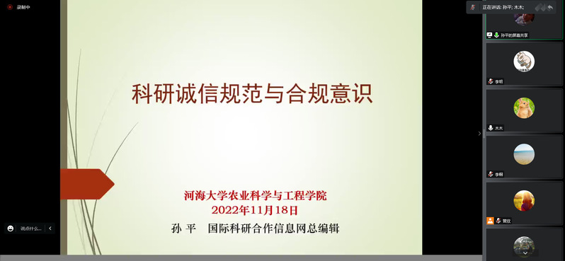 为加强科研诚信建设,加大科研诚信、学术规范的宣传教育力度,营造良好学术道德氛围,2022年11月18日下午,公司在江宁校区行政楼401室举办“学术规范和学术诚信”讲座,邀请国际科研合作信息网总编辑孙平博士为PlayAce游戏平台全体师生作题为“科研诚信规范与合规意识”的报告,讲座由副经理徐俊增教授主持,采用线下与线上相结合的方式进行。