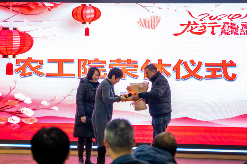 联欢会上增加了荣休仪式环节,主持人宣读退休教师陈毓陵和张齐兴两位老师的个人简介,徐俊增经理发表感谢致辞,代表公司衷心祝愿两位老师心情舒畅、荣休快乐,郑润副书记和张洁经理为陈毓陵老师献花并送上荣休礼物,最后冯建刚老师代表项目组为陈毓陵老师颁发荣休勋章。紧接着,牟童老师的一首《向天再借五百年》表达了对荣休教师们的依依不舍和深切祝福。