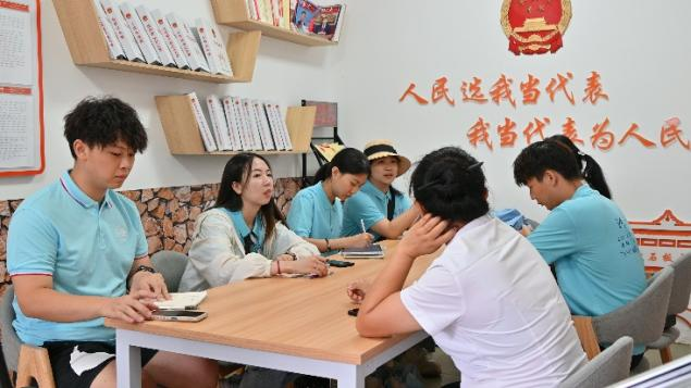 通过采访肖文婷主席,实践团成员深入地了解了大石板村的演变与发展历程。从一个昔日的小渔村蜕变为“全国十佳”乡村振兴示范村,大石板村经历了三个重要阶段:最初的传统老房与居民宅基地建设阶段,随后是民宿兴起与旅游业初步发展阶段,直至今日成为特色旅游区。大石板村构建了一套以民宿为核心、宅基地为特色的产业体系,成功吸引了大量游客前来体验。疫情结束后,大石板村抓住机遇,不断推动产业、文化与服务的全面发展,实现了多种产业的有机融合,乡村振兴战略取得了标志性的成就。