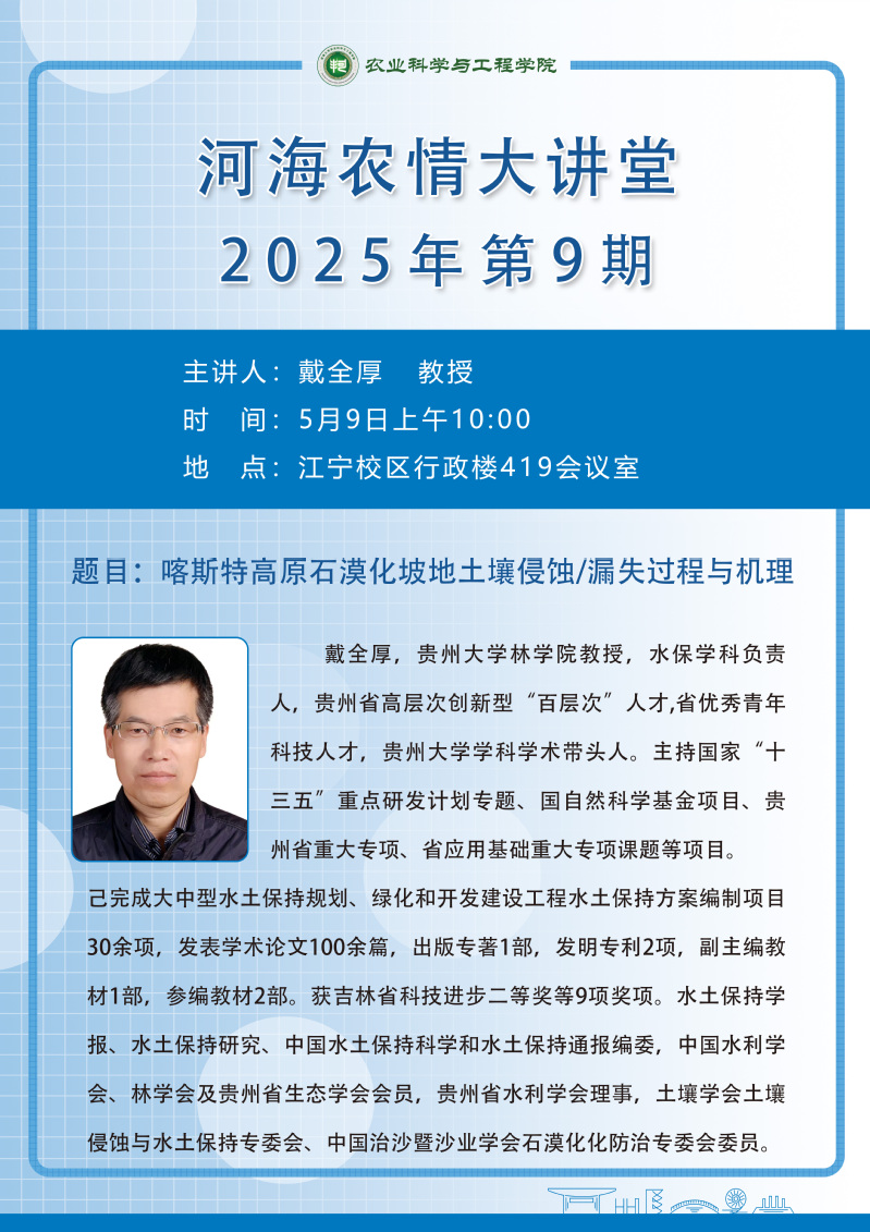学术报告:喀斯特高原石漠化坡地土壤侵蚀/漏失过程与机理
